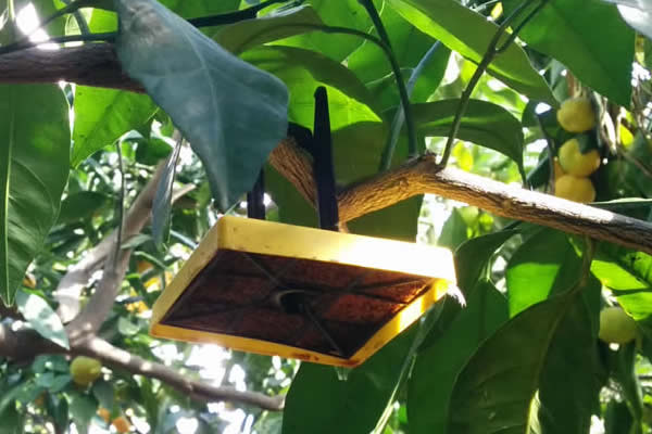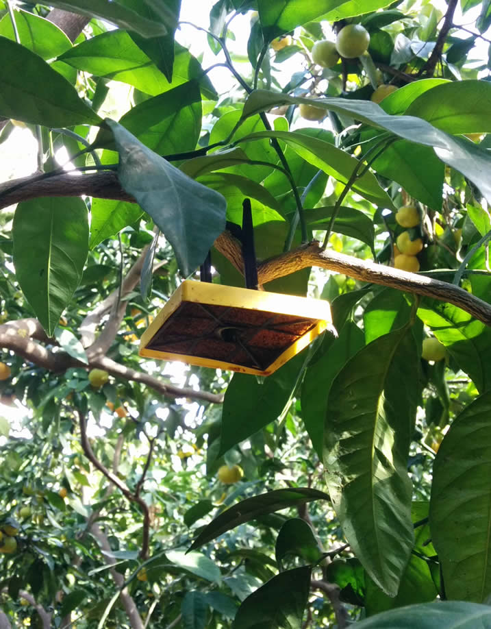 Ceranock® Akdeniz meyve sineklerini cezbeder ve tamamen etkisiz hale getirir. Tuzaklar yerden 1,5-2m yükseklikte, ağaçların güney kısmında bulunan dalların gölge alan yerlerine, hasat sonuna kadar asılı olarak bırakılır. Ceranock® tüm sezon boyunca etkisini koruyacağından zaman ve para tasarrufu sağlar!
